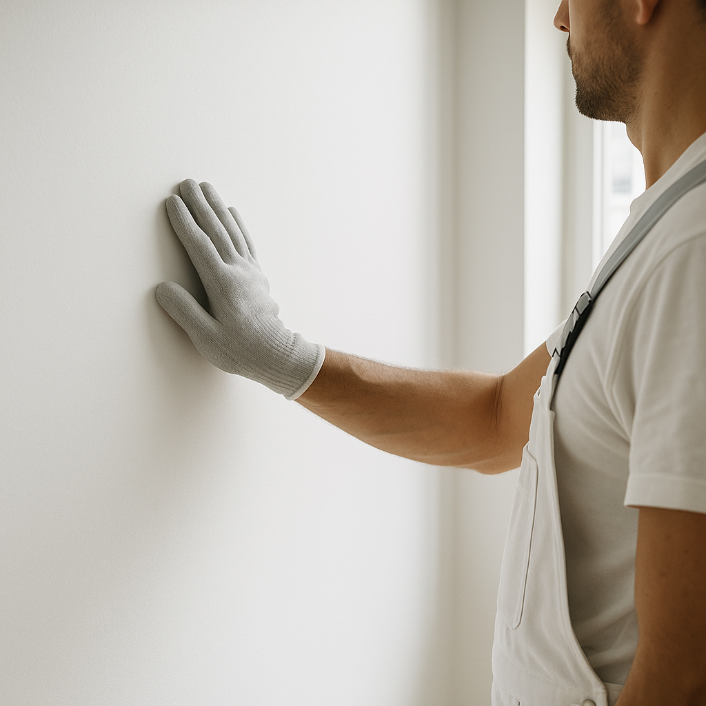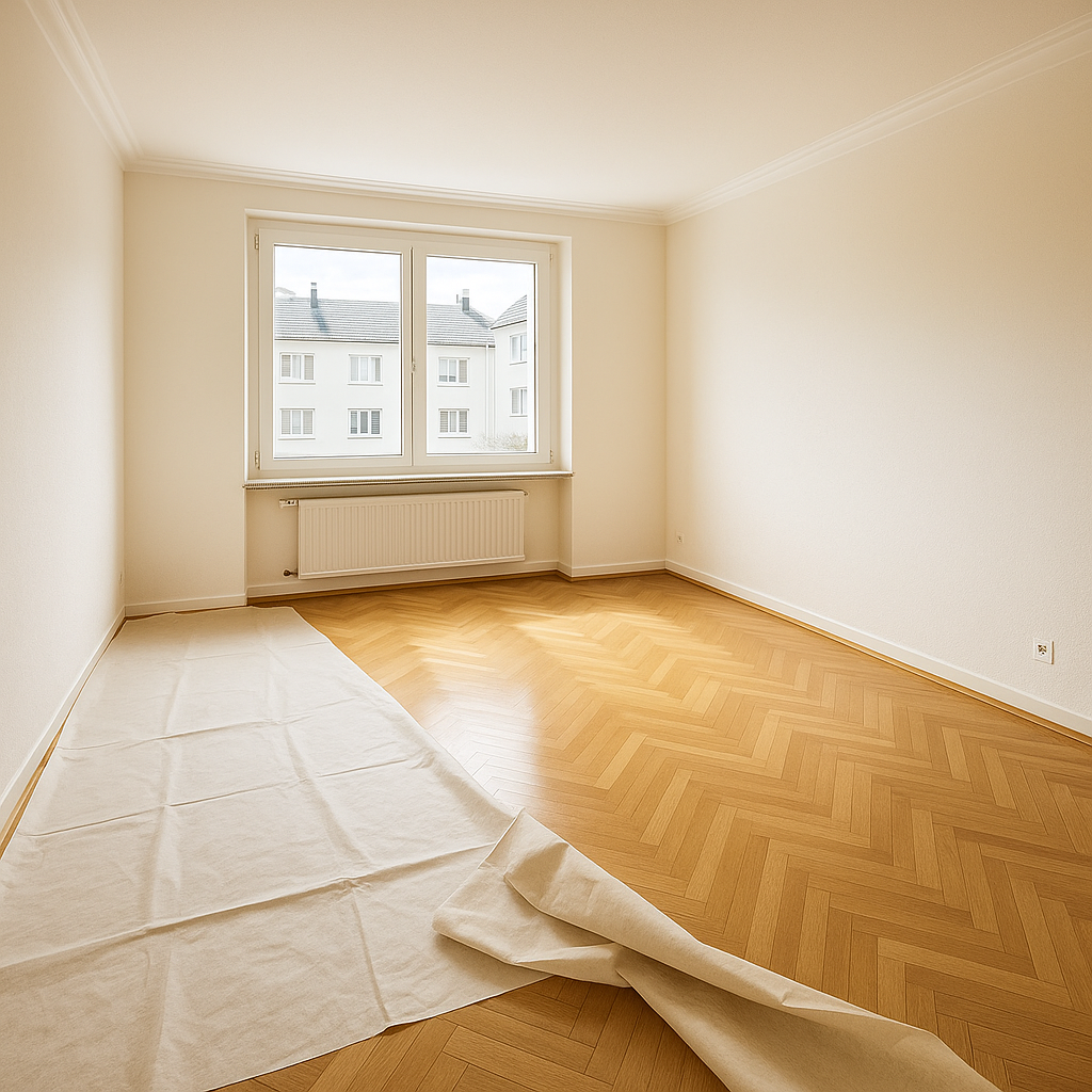 Avant chaque intervention, nous protégeons intégralement les sols, meubles et plinthes avec des matériaux professionnels adaptés (Permafix, adhésifs basse adhérence, bâches antidérapantes).